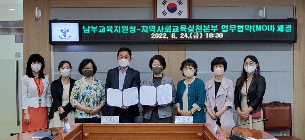 2022년 6월 24일(금) 서울특별시 남부교육지원청과 지역사회교육실천본부의 협약체결식이 실시되었습니다.