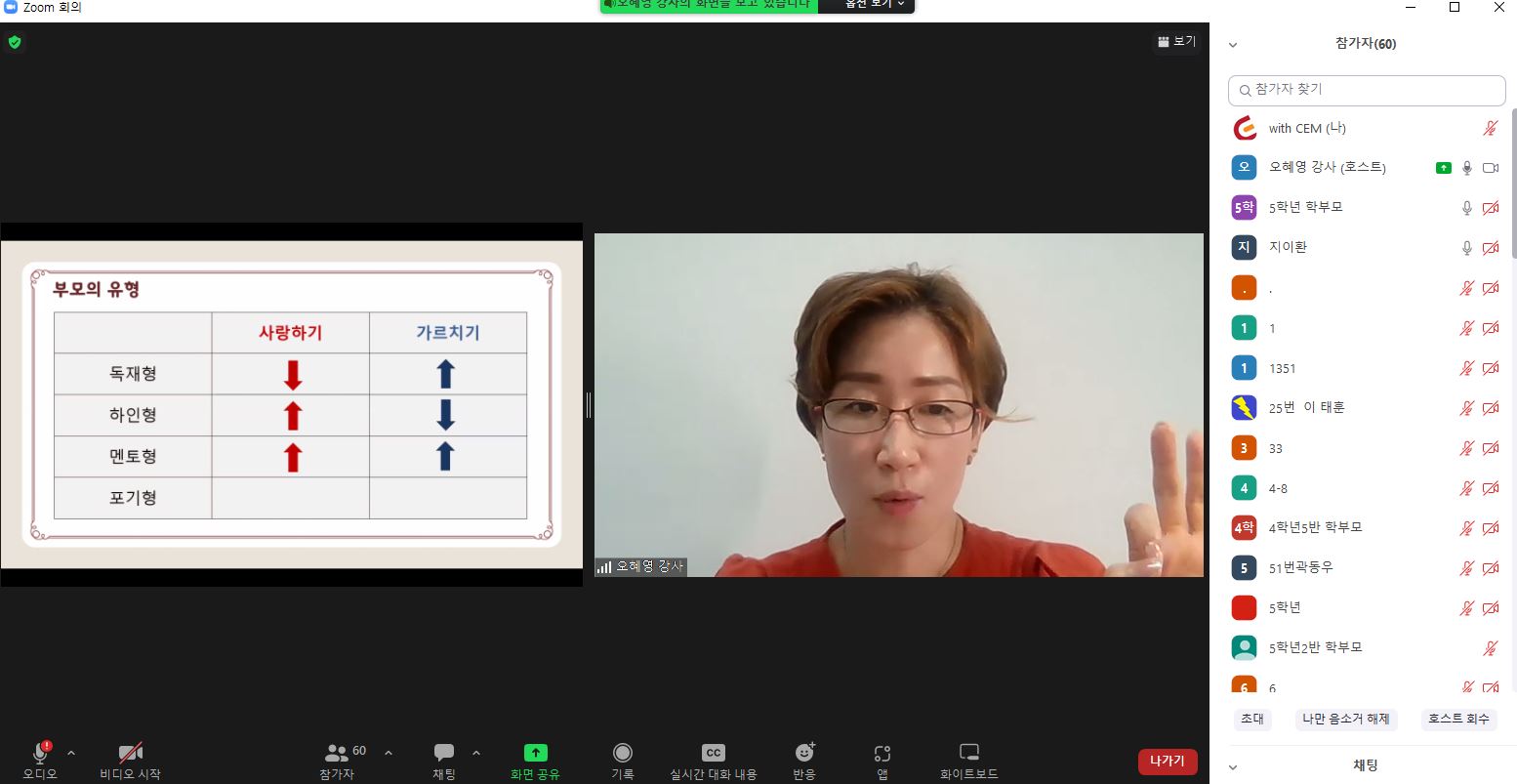 명덕초 - 사춘기 자녀 마음을 여는 부모코칭 / 학부모 60명 / 강사 : 오혜영 선생님